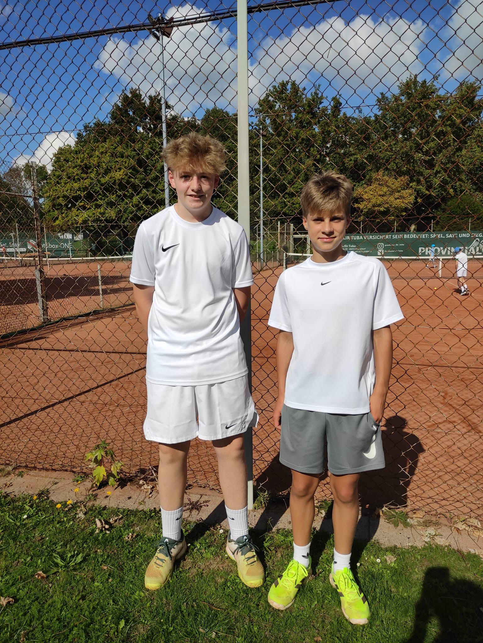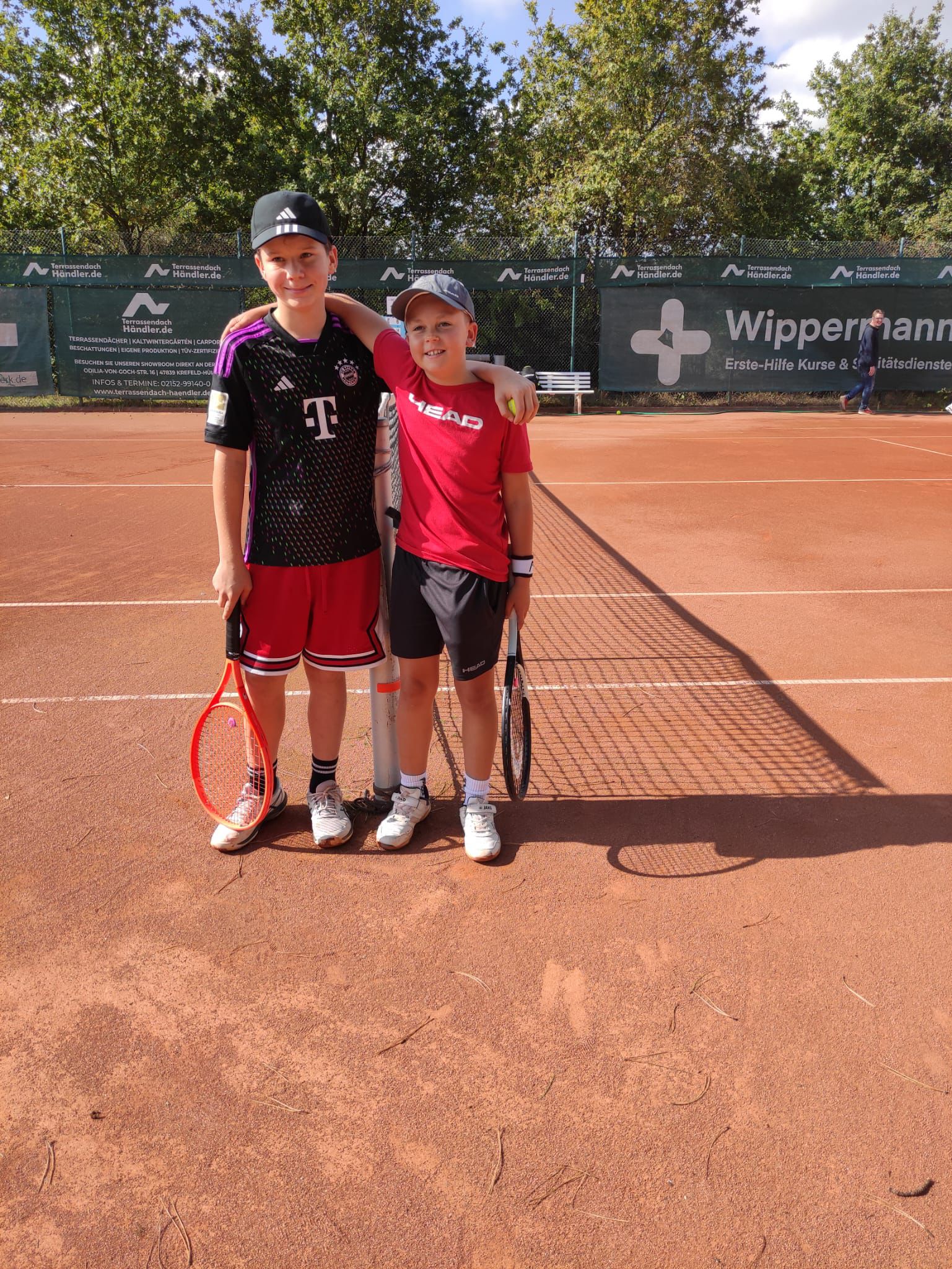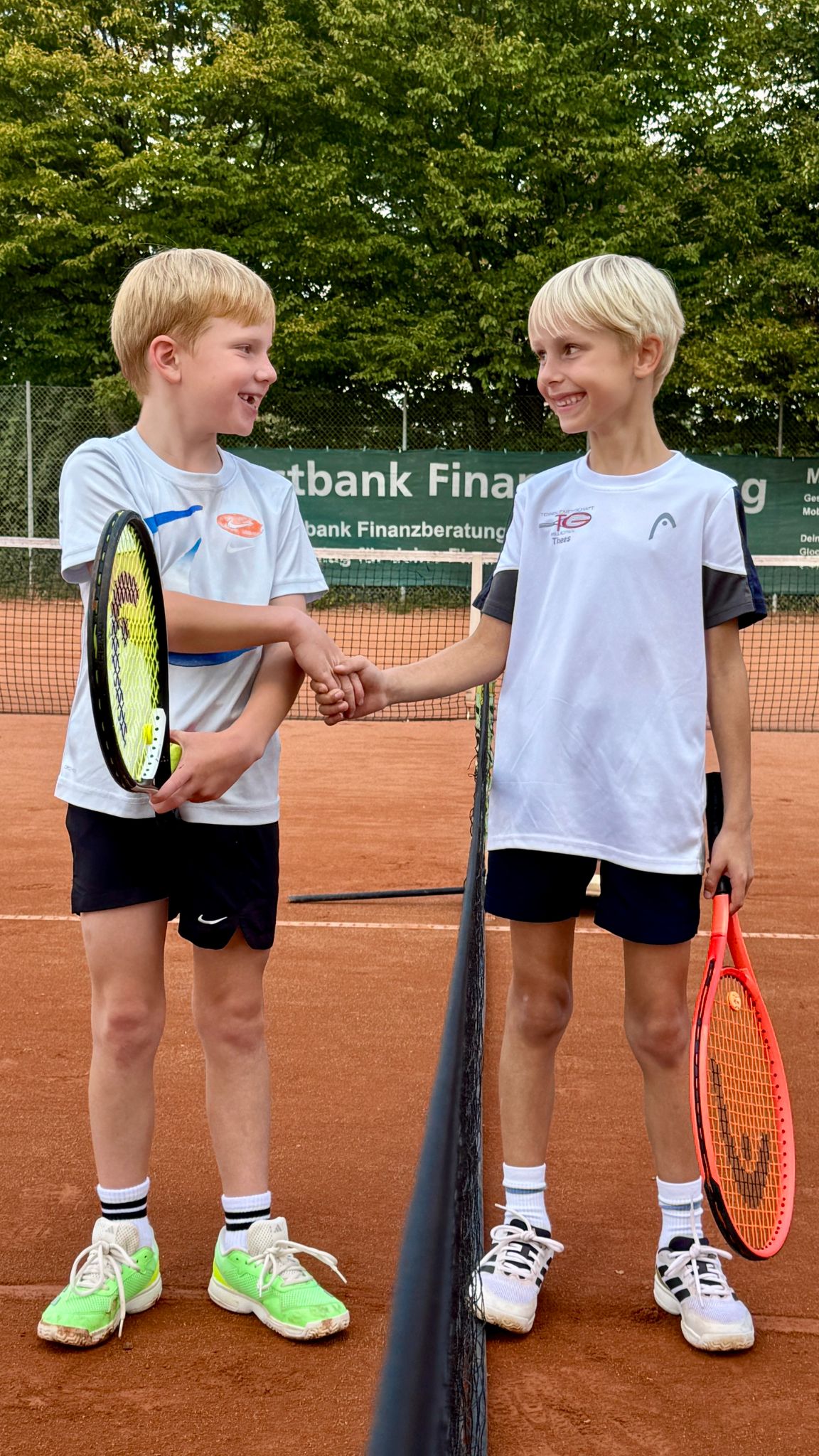 Auf Platz 1 spielten Till und Tom ihr U12g Finale in drei Akten: 6:2 für Till, 2:6 für Tom – und im Champions-Tiebreak blieben Tills Nerven aus Stahl. Beim 10:6 fiel die Anspannung sichtbar ab.